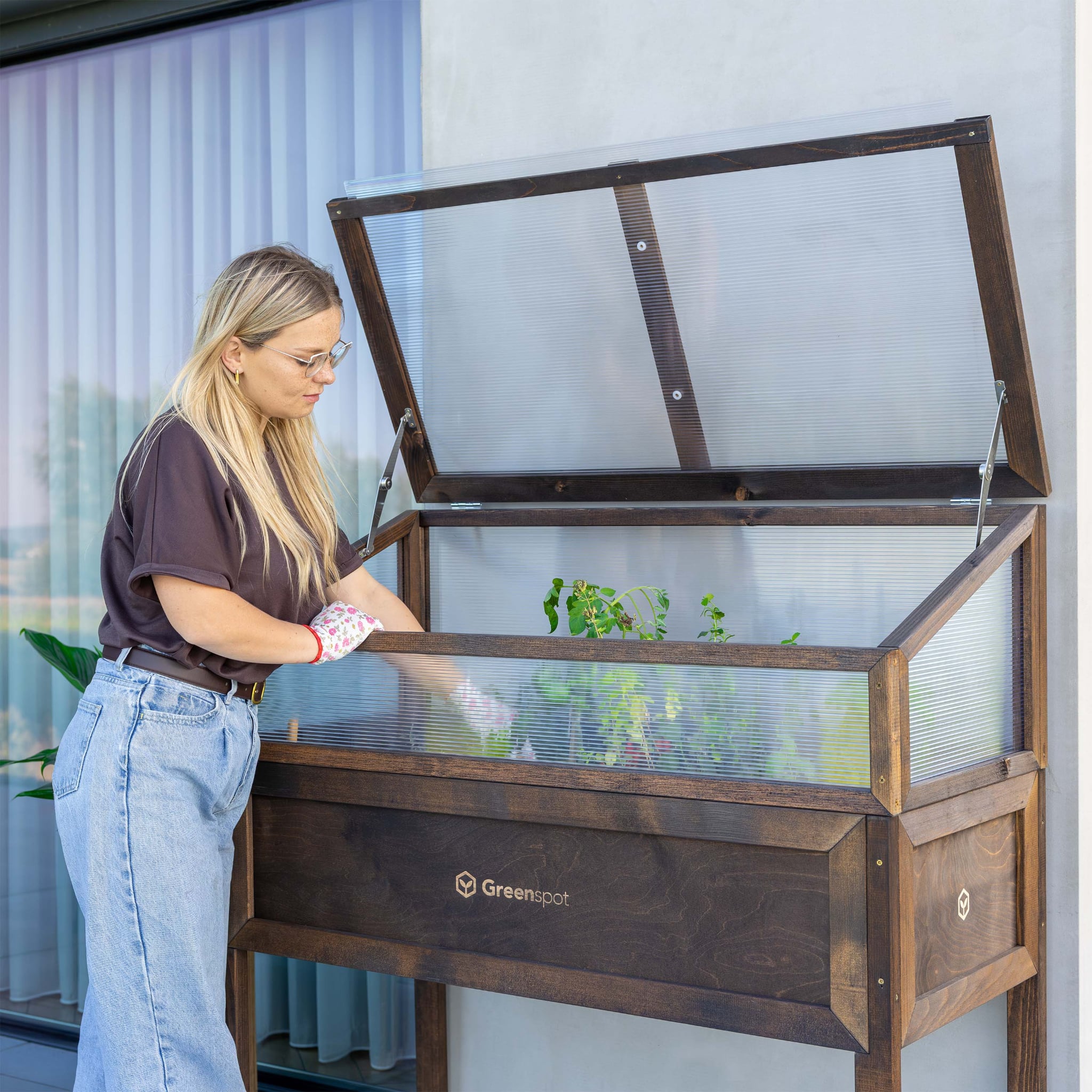 A home mini greenhouse enables earlier harvests of early vegetables. The difference can be up to several weeks compared to traditional sowing in the ground or regular containers. This allows you to stock up on fresh greens during a critical period when the diet lacks vegetables. In a wooden, glazed mini greenhouse, you can grow radishes, various varieties of lettuce, endive, Swiss chard, and parsley for leaves. At the same time, plants in your own mini greenhouse can be grown organically, without chemicals, with rational use of fertilizers or choosing only organic fertilizers. It’s worth paying attention to this aspect, as early vegetables bought in stores are sometimes “stuffed” with nitrogen fertilizers. With improper storage, nitrates accumulating in vegetables (especially leafy ones) transform into nitrites harmful to humans. Growing your own vegetables reduces this risk – vegetables and herbs are healthy!