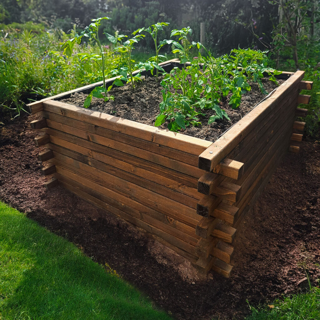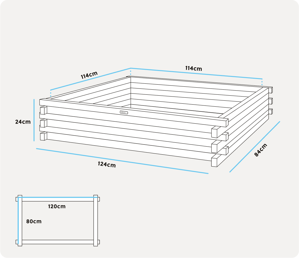 Podwyższoną rabatę możesz w pełni dostosować do swoich indywidualnych potrzeb i preferencji dzięki możliwości łączenia grządek na wysokość. Jedna grządka na podwyższeniu posiada wysokość 24cm, dlatego jeśli preferujesz wyższy poziom grządki ze względu na komfort użytkowania lub problemy z kręgosłupem, ustaw 2 lub 3 grządki na sobie, zapewniając sobie odpowiednio 48cm lub 72cm wysokości. Dolne kondygnacje uzupełnij chrustem, liśćmi, skoszoną trawą, bądź przygotowanym kompostem. Kupując powyżej 1 sztuki, dodajemy do paczki prostowniki do łączenia grządek.